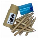 Kredki Judo. Zestaw 12 kredek w okrągłym pudełku zamykanym kolorową zatyczką z wbudowaną temperówką i naklejką JUDO