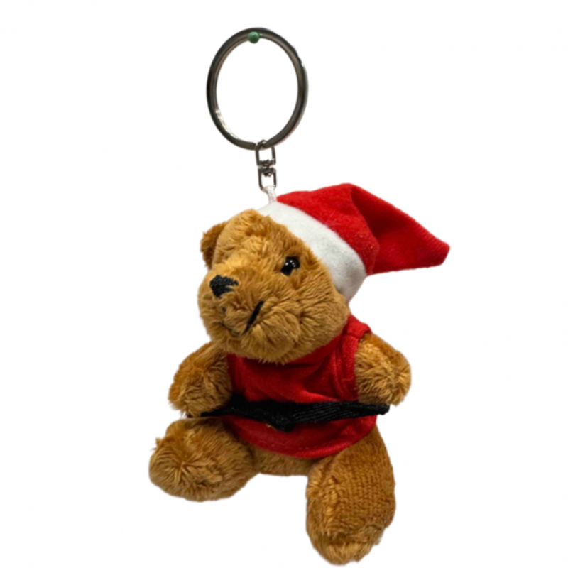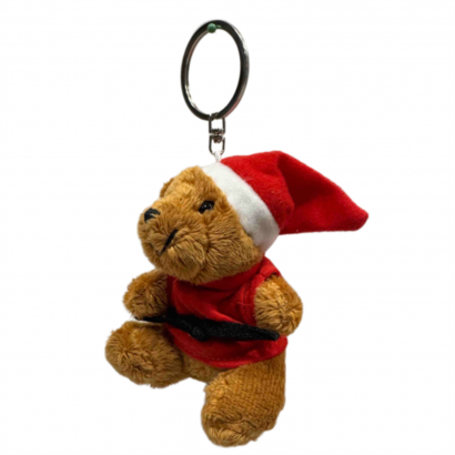 Pluszowy brelok, zawieszka miś w czerwonej Judogi (kimonie) z czarnym pasem. Na głowie czapeczka mikołaja. Wielkość 8cm.