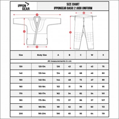 Judoga 500g/m2, zagęszczony pojedynczy splot, materiał z typową strukturą ziarenek ryżu. Profesjonalne wzmocnienia na karku na ramionach, klatce piersiowej. Ze szwem tylnym. Materiał 60% bawełna 40% poliester.