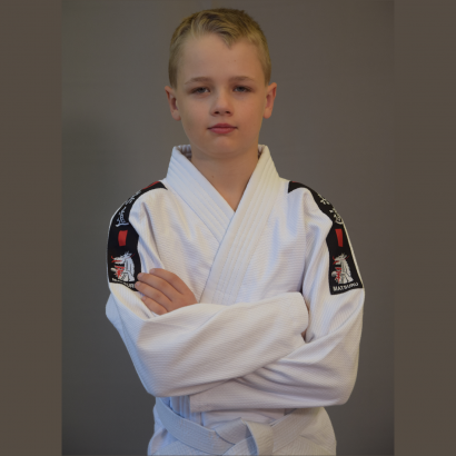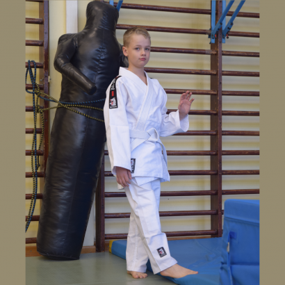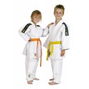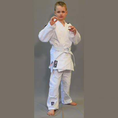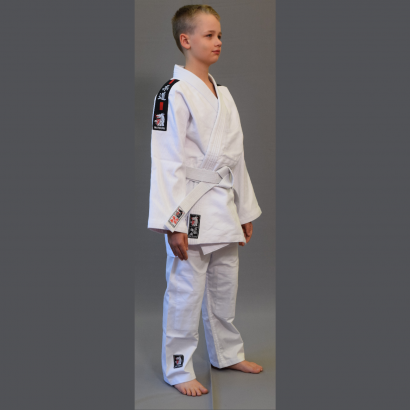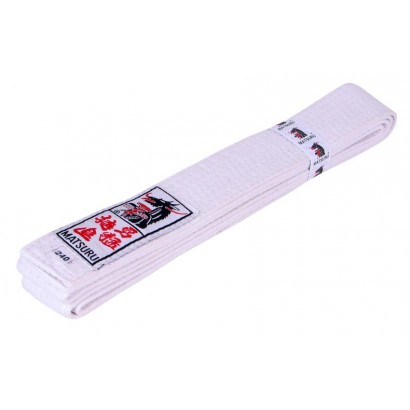 Kimono: 350g/m2, pojedynczy splot, wybielana, 100% bawełna, materiał z typową strukturą ziarenek ryżu. Wzmocnienia na karku oraz na ramionach. Naszywki Matsuru na ramionach. Bez szwu tylnego.