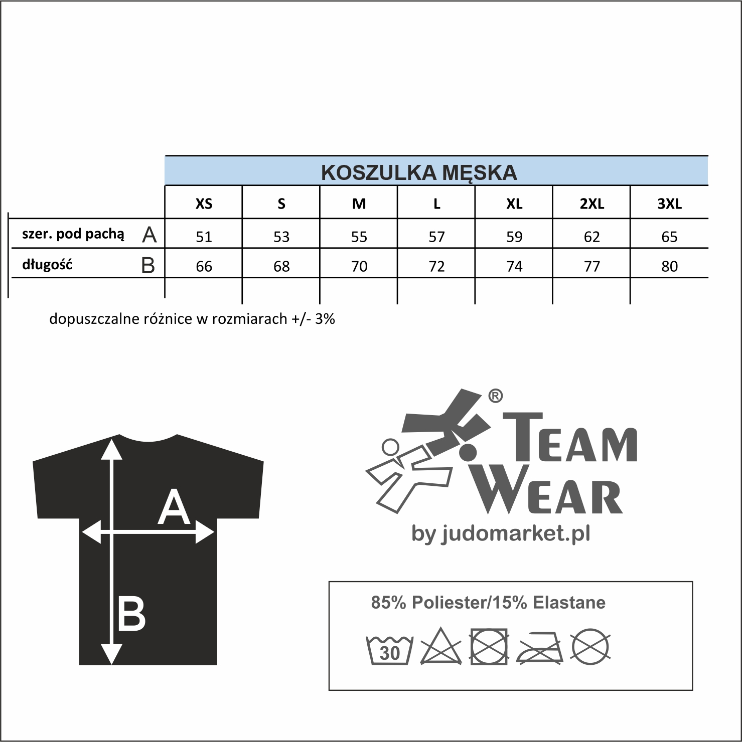 Koszulka męska wykonana z dwóch różnych tkanin poliestrowych. Przód z pełnej tkaniny typu "silk touch", tył tkanina typu "mesh" delikatna siateczka. Specjalnie zaprojektowana dla Reprezentacji Polski Judo. Dynamiczna grafika z motywem orła z przodu oraz z tyłu. Godło na lewej piersi oraz logo Polskiego Związku Judo na rękawie wykonane w technice 3D. Na plecach silikonowy napis POLSKA.