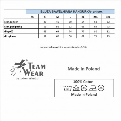 Bluza unisex z kapturem. Wykonana z bawełny.  Specjalnie zaprojektowana dla Reprezentacji Polski Judo. Grafika na kieszeni oraz wewnątrz kaptura z  motywem przewodnim dla całej kolekcji. Godło na lewej piersi oraz logo Polskiego Związku Judo na rękawie wykonane w technice 3D. Na plecach silikonowy napis POLSKA.
