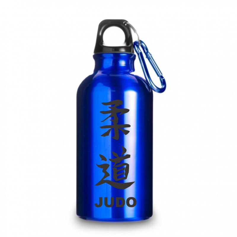 Metalowy bidon na zimne napoje z wygrawerowanym napisem judo po japońsku.