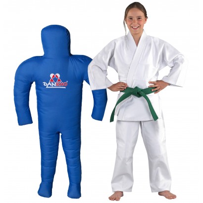 Manekin do treningu judo z niebieską powłoką zewnętrzną z nylonu i lekkim wypełnieniem z tkaniny jest doskonałą pomocą treningową dla dzieci i młodzieży, idealną do ćwiczeń rzutów, technik chwytów itp.