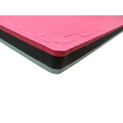 Mata jest typu "puzzle", co oznacza, że jej kształt umożliwia łączenie wielu mat razem, tworząc powierzchnię do ćwiczeń o dowolnym rozmiarze. Kolorystyka czerwona/zielona oliwka dodaje matom atrakcyjności i ułatwia organizację przestrzeni do ćwiczeń.