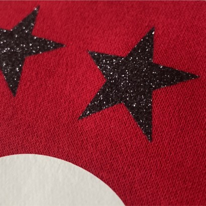 Nadruk wykonany technikami mieszanymi flex i gwiazdki - brokatowe.