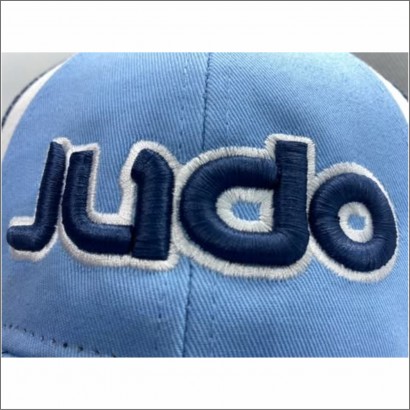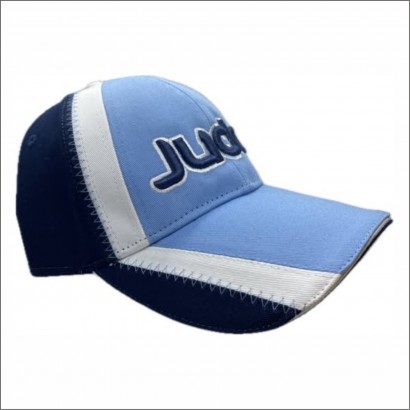 Czapka z daszkiem typu sandwich. Haft JUDO. Kontrastowe przeszycie na daszku, wstawki z białego materiału. Regulowany rozmiar. Materiał: bawełna, metalowa klamra.